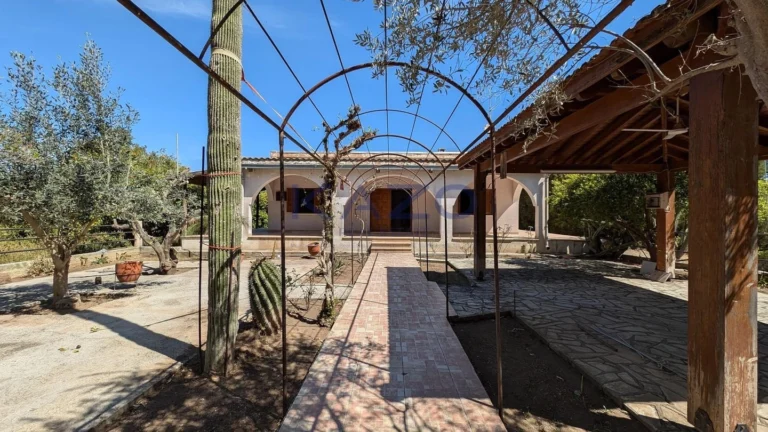 This exceptional residential land stands out not only for its generous size but also for a key legal benefit: a 4.57-meter-wide right of way from the adjacent plots. According to current planning regulations, this specific width allows for the development of up to three separate residential units without additional costs for formal plot subdivision—an advantage for investors or developers. All development plans are, of course, subject to approval by the relevant authorities, but this property presents a strategic and cost-effective pathway to maximize residential returns in a sought-after location. Included with the land is a ground-floor home nestled in the heart of nature, in the serene community of Psevdas, Larnaca. Set within a vast 6,948m² residential field, this property offers a rare opportunity to enjoy countryside living while remaining connected to nearby villages and amenities. Originally built in 1985, the house is thoughtfully positioned on the eastern portion of the plot, with direct frontage on Agias Aikaterinis Street and access via a 4.57m right of way through four neighboring parcels. Surrounded by greenery and fresh air, the home lies just 600m from Psevdas Community Stadium and 620m from the village kindergarten, with easy access to Agia Anna, Mosfiloti, and Pyrga. The home boasts a 166m² enclosed area featuring a warm, rustic interior. Step inside through the spacious covered veranda (47m²)—which wraps around the south, east, and west sides of the house—into an open-plan layout with a cozy sitting area, dining/living space, and built-in bar, perfect for hosting family and friends. The kitchen includes an additional kitchenette for extra convenience, while three comfortable bedrooms share a well-sized bathroom. The property falls within Zone H2, with a building coefficient of 90%, coverage of 50%, and permission for 2 floors (8.3m) of construction. Pending issuance of Energy Performance Certificate.