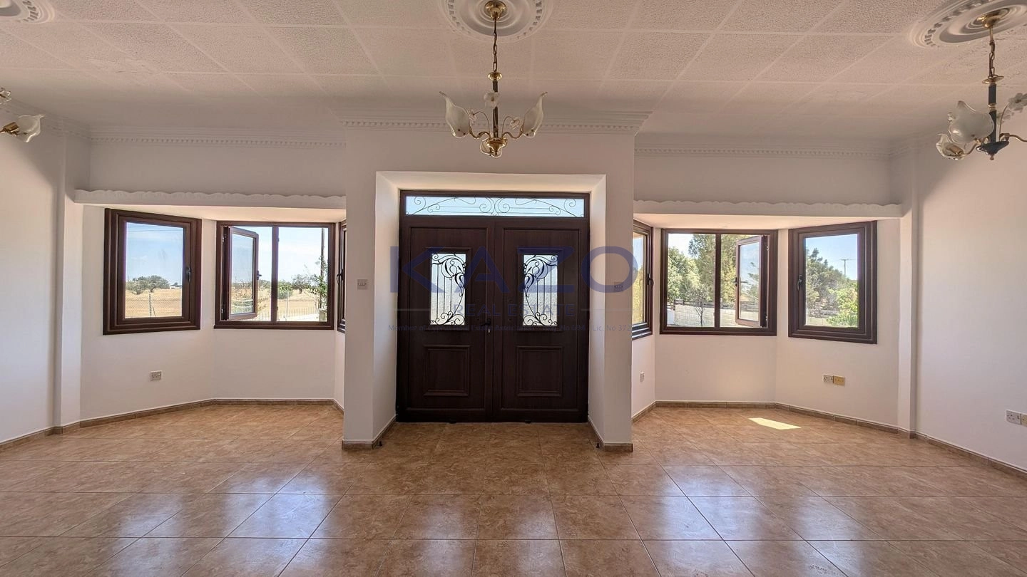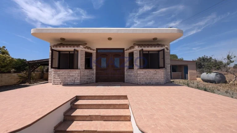 OPEN HOUSE : 22/05/2025 HOURS: 16:00 – 17:00 The asset is situated in the tranquil community of Avgorou, in the Ammochostos district. It represents a 25% divided share of a residential field with a total area of 11,074 sq.m., equating to approximately 2,768 sq.m. Included within this share is a charming ground-floor house featuring three bedrooms. The house features a spacious open-plan design that seamlessly integrates the kitchen, dining, living, and sitting areas. It includes three comfortable bedrooms, one of which is a master with an en-suite bathroom, as well as a separate main bathroom. The outdoor area boasts a spacious yard, a traditional stone wood oven, a barbecue area, and both covered and uncovered verandas. Additionally, there is a pergola on the southeastern side, while the northwestern side includes covered parking and a separate studio featuring a kitchenette, a combined dining and sleeping area, and a small bathroom. The charming three-bedroom house is located in the southeastern part of the field, approximately 870 m. northeast of the First Primary School of Avgorou and approximately 700 m. from the village center. There is a Distribution Agreement in place. The property falls within Zone Κα6, with a building coefficient of 90%, coverage of 50%, and permission for 2 floors (10m) of construction. Pending issuance of Energy Performance Certificate.