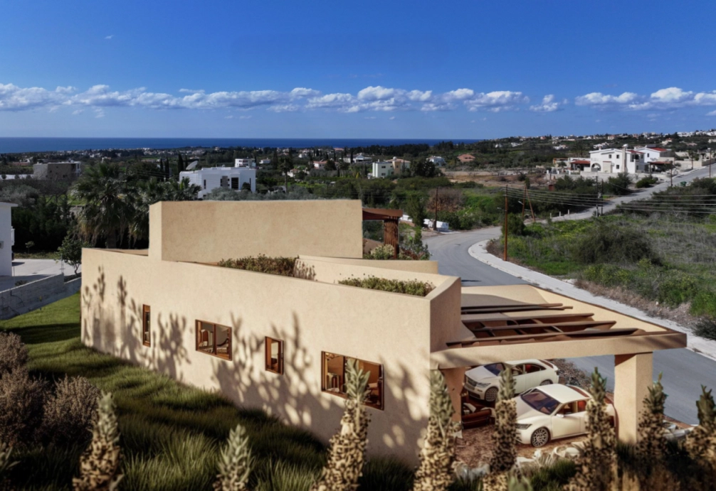 This secluded property is located near Sea Caves, Coral Bay, and Peyia in Kato Paphos. The main house includes three bedrooms, an open-plan living, dining, and kitchen area, and a separate multi-use room that can serve as a fourth bedroom, office, gym, or additional living space. The property sits on a 980m² plot with extensive gardens, a pool with a shallow section and sunken seating, a BBQ area, and a large roof terrace offering sunset sea views. A self-contained one-bedroom apartment is also included. The house features underfloor heating, whole-house cooling, a water filtration system, and high-quality construction materials including natural stone, concrete or soft renders, and aluminium detailing. The main features of the project and the units: Main house with 3 bedrooms plus a multi-use room Self-contained 1-bedroom apartment Open-plan living, dining, and kitchen area with island and breakfast bar Master bedroom with ensuite, walk-in wardrobe, and sea views 980m² gardens with infinity pool, sunken seating, and BBQ area Roof terrace with sunset sea views Off-road parking for 2 cars with covered carport Water filtration, underfloor heating, and VRV whole-house cooling High-quality construction with natural stone and aluminium detailing The project has an EPC certificate with “A” energy efficiency rating.