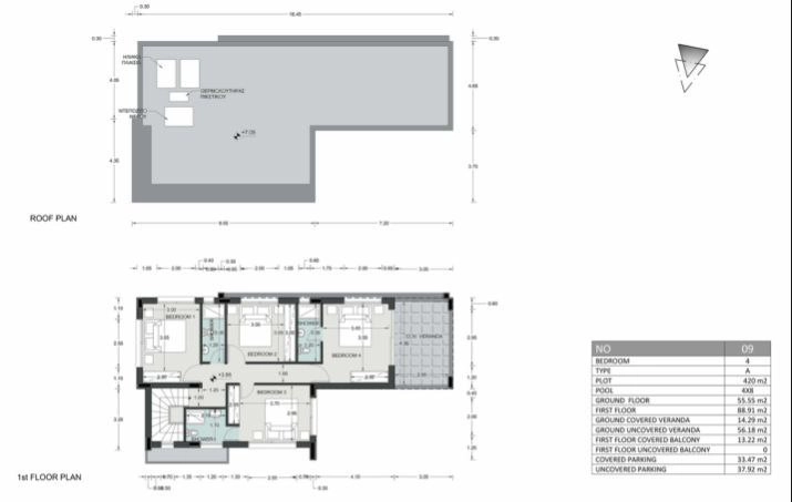 Villa for sale in Agia Thekla, near the marina of Ayia Napa, Famagusta. The project consists of 20 detached houses with 4 bedrooms with modern architectural design and functional, comfortable rooms. All houses have a private pool, barbecue, outdoor shower, double covered parking, covered terrace and toilet with shower on the ground floor. All villas are made of high-quality materials, double-glazed windows are installed, have good thermal insulation and comply with energy efficiency class A. On the second floor, all bedrooms have a separate toilet and shower. One of the bedrooms has access to a covered terrace. An ideal investment option is a promising area, thanks to the large marina project.