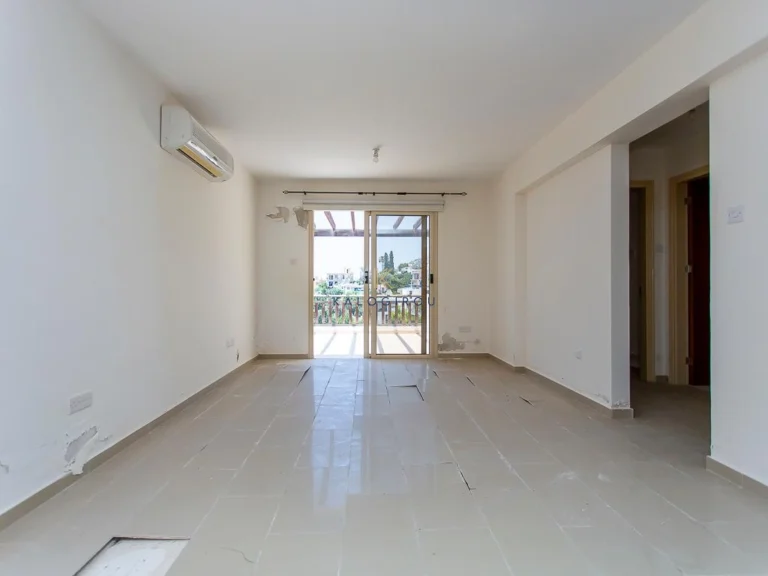 Top floor apartment for sale in Paphos, Pegeia area. It is part of a complex which was built in the year 2007. The apartment consists of an open plan kitchen, living, dining area, two bedrooms, a bathroom and a covered veranda. Internal covered area of the apartment is 67 sqm and the covered veranda is 19 sq m and Uncovered Veranda 25 sq m. The residents have also access to the complex’s common swimming pool and other amenities/services.