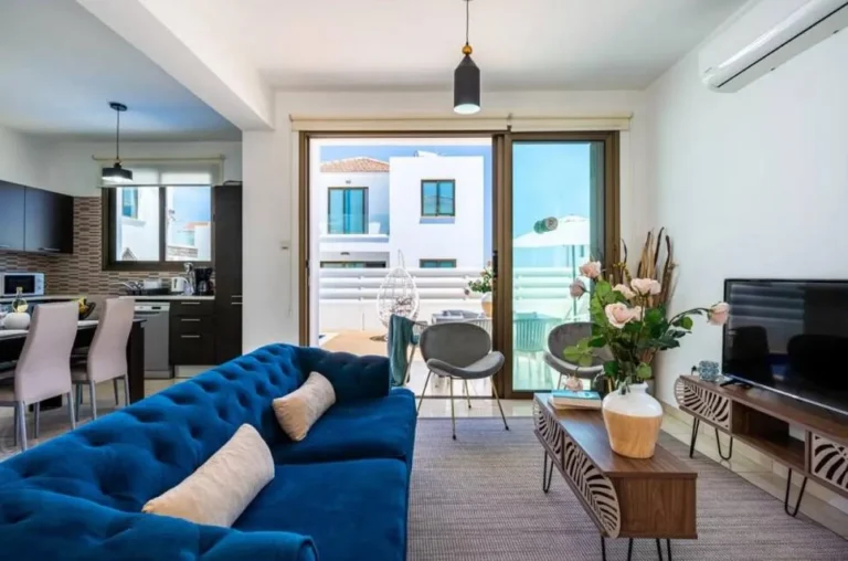 A three-bedroom villa is for rent in Pernera, Famagusta, featuring a private pool and an outdoor relaxation area. The villa includes three bedrooms, a bright living room with a sofa and smart TV, a fully equipped kitchen, a dining area, and two bathrooms. The property also has a terrace with sun loungers and an outdoor dining area. The villa is equipped with air conditioning, heating, WiFi, a washing machine, a clothes drying rack, an iron, kitchen appliances, and free parking. It is conveniently located near Trinity Beach, supermarkets, cafes, and restaurants, with easy access to transportation and local attractions.