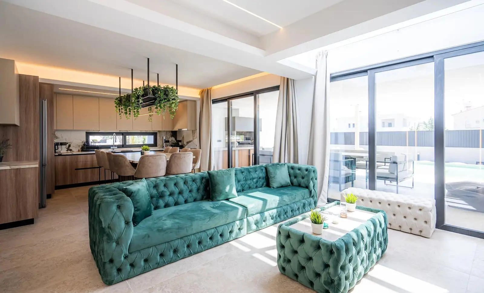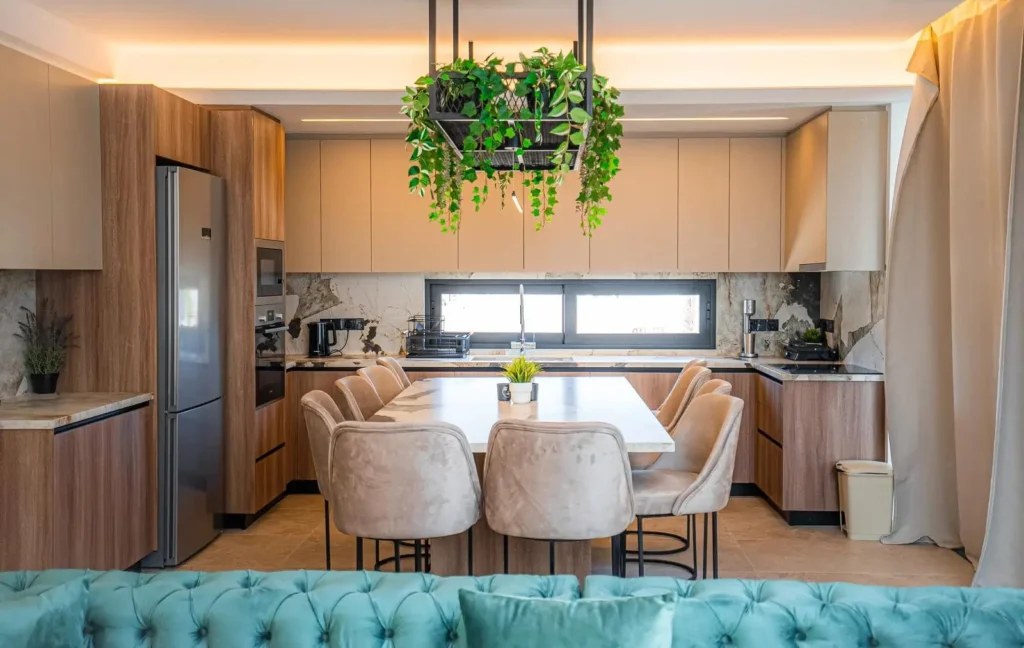 5 bedroom villa for rent in Paralimni, Famagusta. Open-plan kitchen/living room. The house is fully furnished and equipped with household appliances. All rooms are equipped with air conditioning. It is located just a 3-minute drive from Protaras and Ayia Napa. A large courtyard with a well-kept garden, terrace and swimming pool. There is a cozy fireplace and a billiard table in the living room.