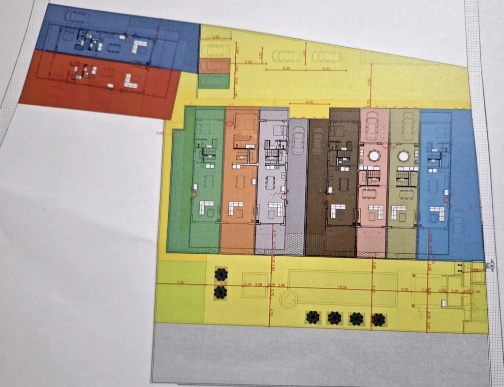 House for sale in Kapparis, Famagusta. The project is a tourist complex consisting of 9 cottages.On the ground floor there is a bedroom with its own shower and toilet, a kitchen, a living room, a guest toilet, a spacious balcony overlooking the pool and a small garden with a gate leading to the street. On the second floor there are three bedrooms with a balcony, a bathroom and a toilet. The houses are equipped with a kitchen (including refrigerator, oven, hob, washing machine), fitted wardrobes in the bedrooms and air conditioning in all bedrooms, kitchen and living room.The complex includes a communal swimming pool, Jacuzzi, children’s pool, relaxation areas and an indoor pool area. The pool is adjacent to an extensive green area. Parking is available for the car.The project is within walking distance of quiet, clean and transparent beaches, as well as traditional restaurants and taverns. A new marina is currently being built in the area. The complex is an ideal option for both living and investment. The rental potential of holiday homes is approximately 85% occupancy during the 22 weeks of the summer season.The project is in the off-plan stage.