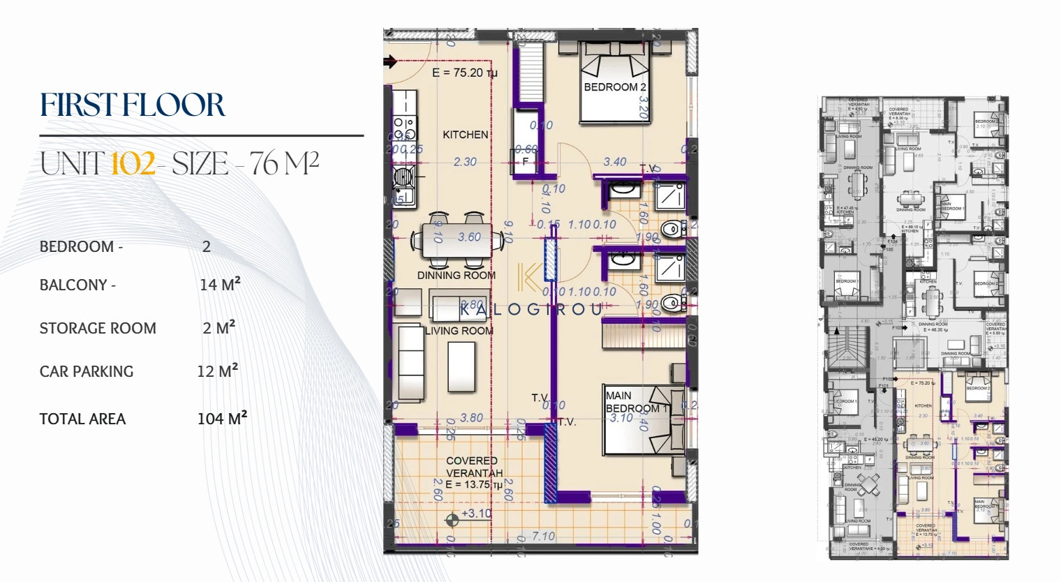 The project consists of 10 x one-, two- bedroom apartments. All apartments have private covered parking and storage room. Moreover, three top floor apartments enjoy private roof garden.