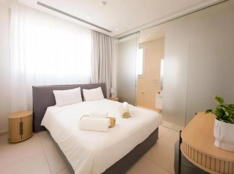 A sea-view villa for rent in Agia Napa, Famagusta. The villa features a spacious living room with a fully equipped kitchen and dining area, four bedrooms (two with en-suite bathrooms), an additional kitchenette, a private pool with sun loungers, and a rooftop terrace with a jacuzzi, BBQ area, and sea views. Shops, restaurants, and Limanaki Beach are within walking distance. Equipped with air conditioning, internet, washing and dishwasher machines, full household appliances, and parking. 4 bedrooms, 4 bathrooms + 1 WC, pool.