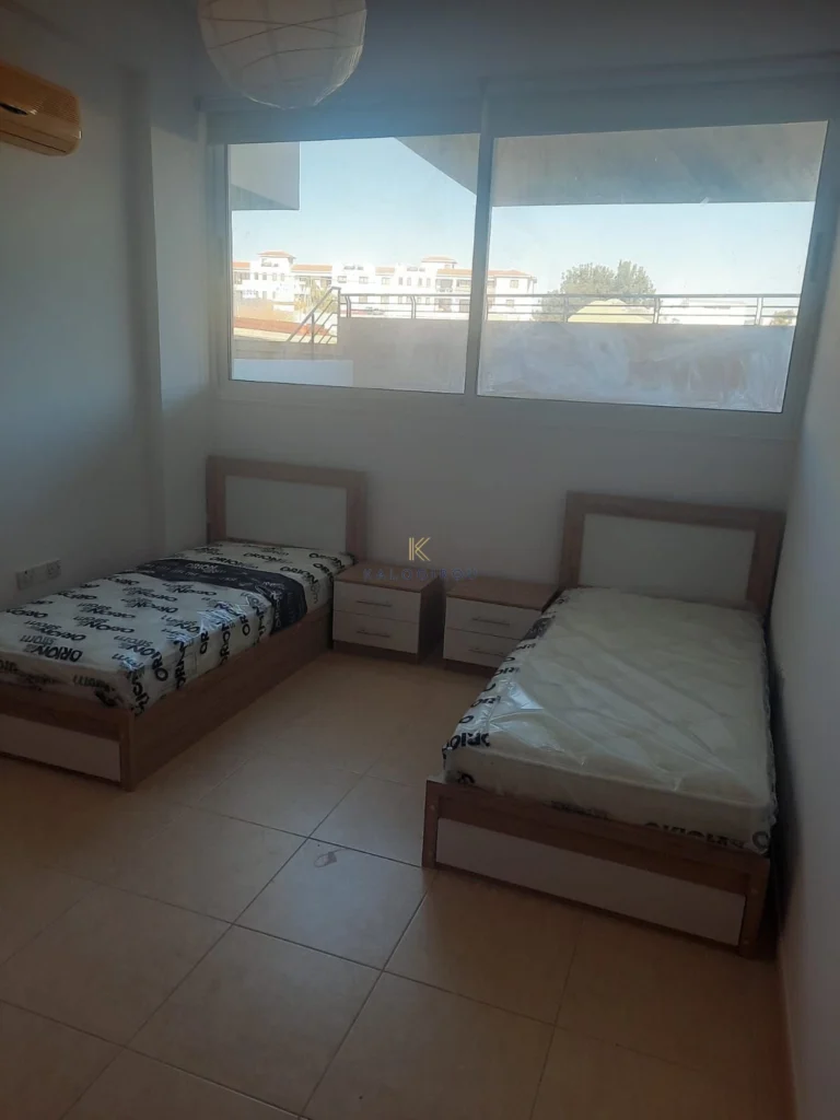 The apartment consists of a separate kitchen with covered balcony, spacious living room, a main bathroom with w.c, 2 bedrooms and a covered balcony overlooking some nice green views.