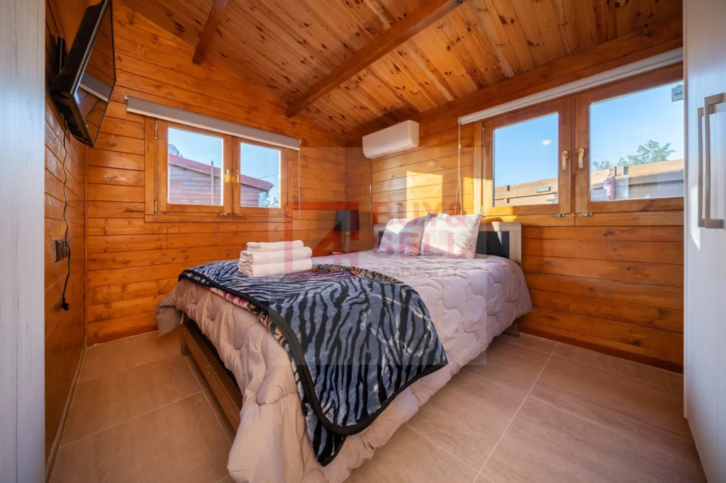 This charming one-bedroom wooden cabin offers a warm and welcoming atmosphere, perfect for individuals or couples. It comes fully furnished and equipped with all essential appliances, including a refrigerator, oven, washing machine, air conditioning, and more.