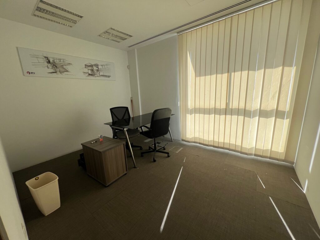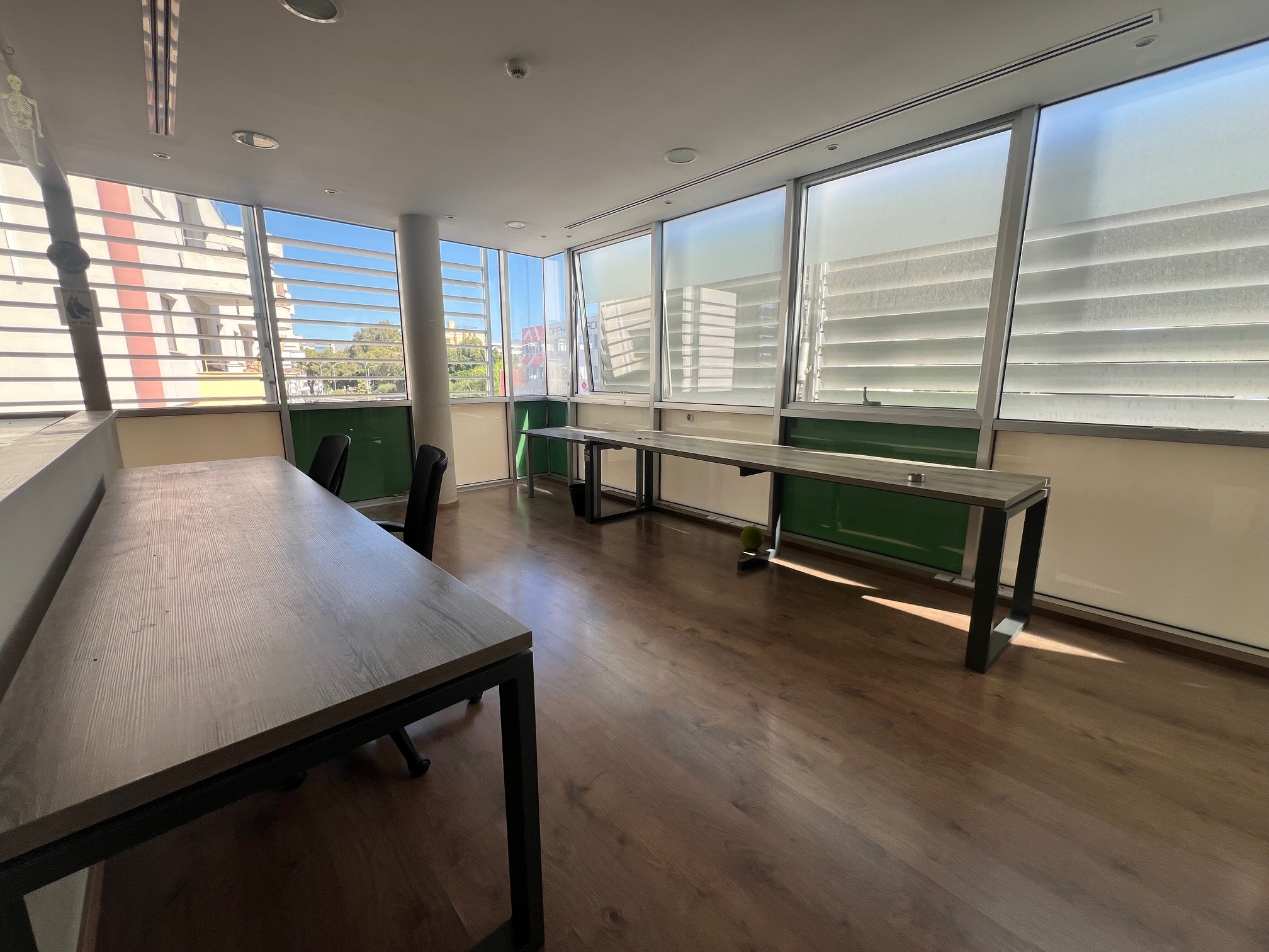 For rent office space with a city views located on Christaki Kranou street in Germasogeia, with easy access to the highway and withing walking distance to all kind of amenities. The covered area is 165 sq. m and it consists of a reception area, an open-plan space, separate office, meeting room, 2 Wc, separate kitchen and storage room. The office is semi-furnished, with air conditoning system, laminate raised floor, double glazed windows, provision for alarm system and 3 uncovered parking places. Also there is a common roof garden with a smoking area.The minimun rental period is 2 years.