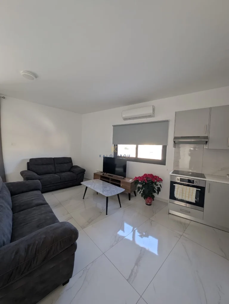 First Floor, Fully Furnished, Apartment for Rent in Kiti area, Larnaca. The property consists of an open plan kitchen, living and dining area, Two bedrooms- master bedroom is en-suite shower and wc, one common shower with wc and covered veranda.