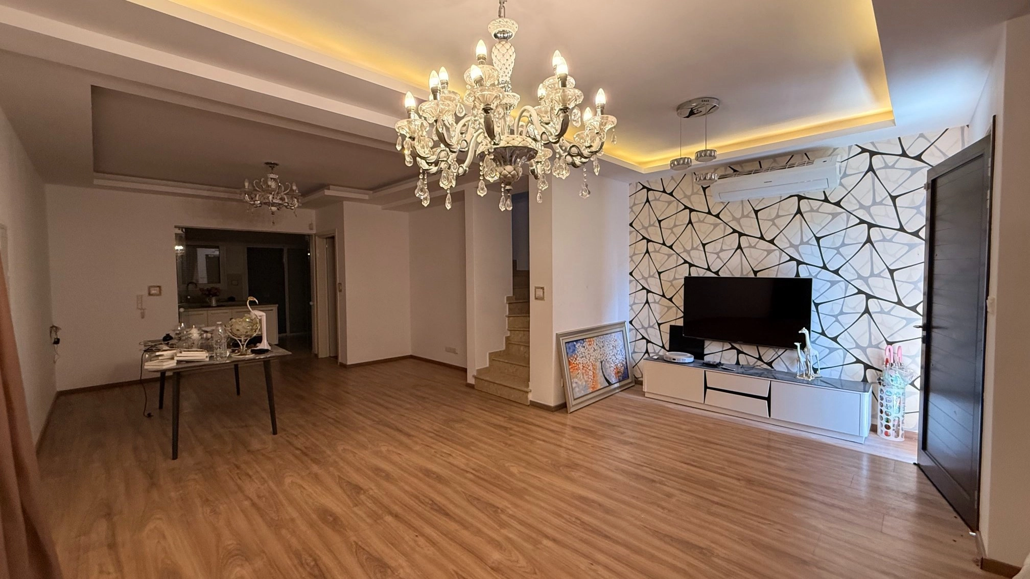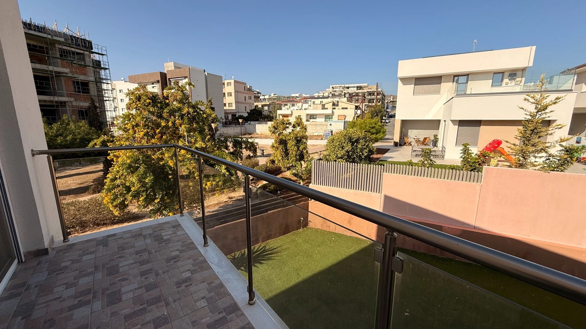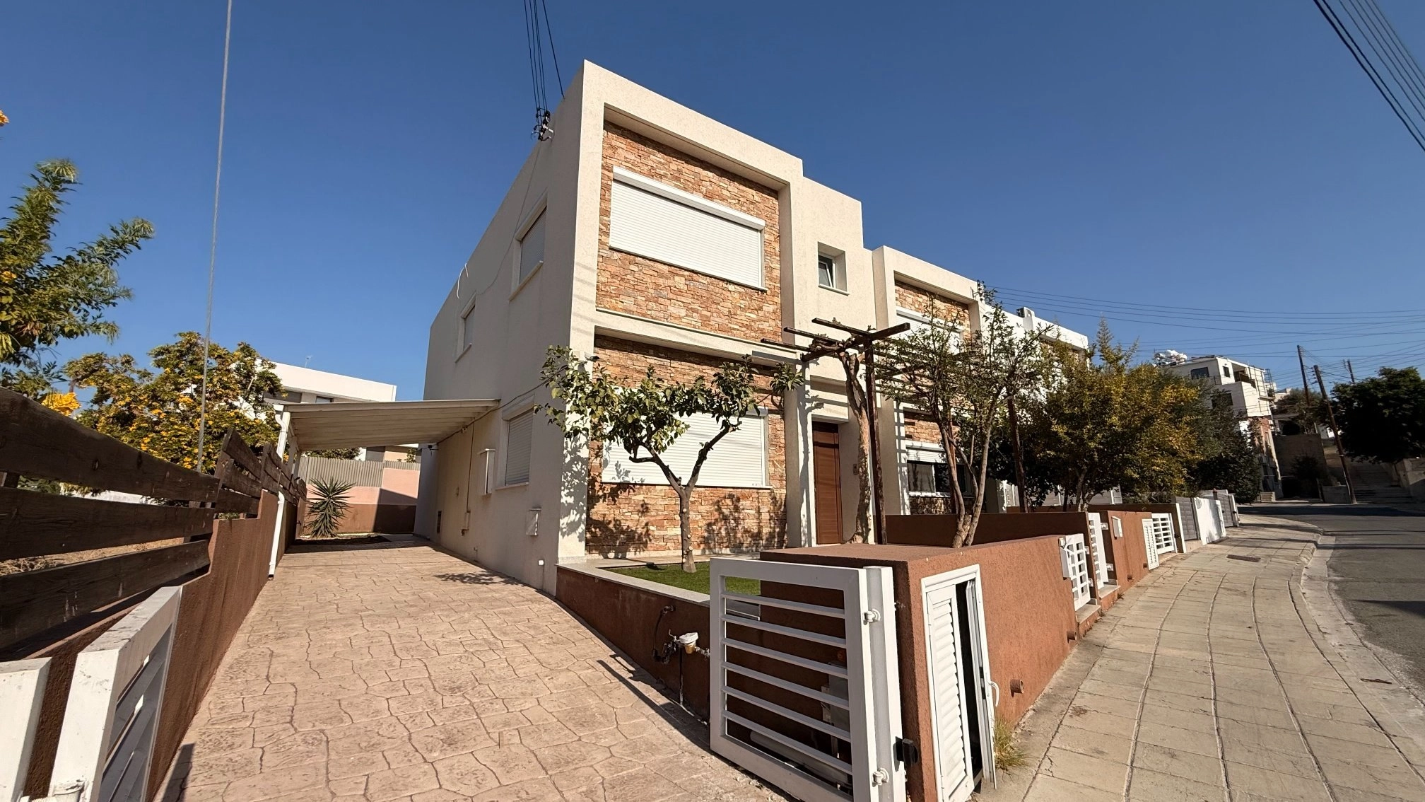The three-bedroom semi-detached house is located in Agios Athanasios, 1km from The Grammar School and 7mins drive to Foley’s School. The house comprises 3 bedrooms, 1 ensuite bathroom with a shower, 1 family bathroom, and a guest WC on the ground floor. There are solar panels for hot water, a/c split units in all rooms, mosquito nets, parquet floors, shutters (manual), and double-glazed windows. The kitchen is fully equipped (dishwasher), and the house is UNFURNISHED (only electrical appliances). Year built 2016. The covered area is 170sq.m, plot size 247sq.m.