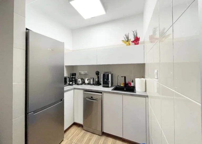 Office space for rent with a total area of 265 m2 in Neapolis, Limassol. The offices include nine fully furnished workrooms designed to accommodate up to twenty employees, as well as a reception area, meeting rooms, an ANAD-certified training room, a kitchen with a dining area, sanitary rooms and a comfortable waiting area. The premises are equipped with an air conditioning system, Internet, CCTV video surveillance system and an alarm system, which ensures that they are ready for immediate use. The property has beautiful sea views and convenient location. The payment includes a parking space. The energy efficiency of the building corresponds to class B.