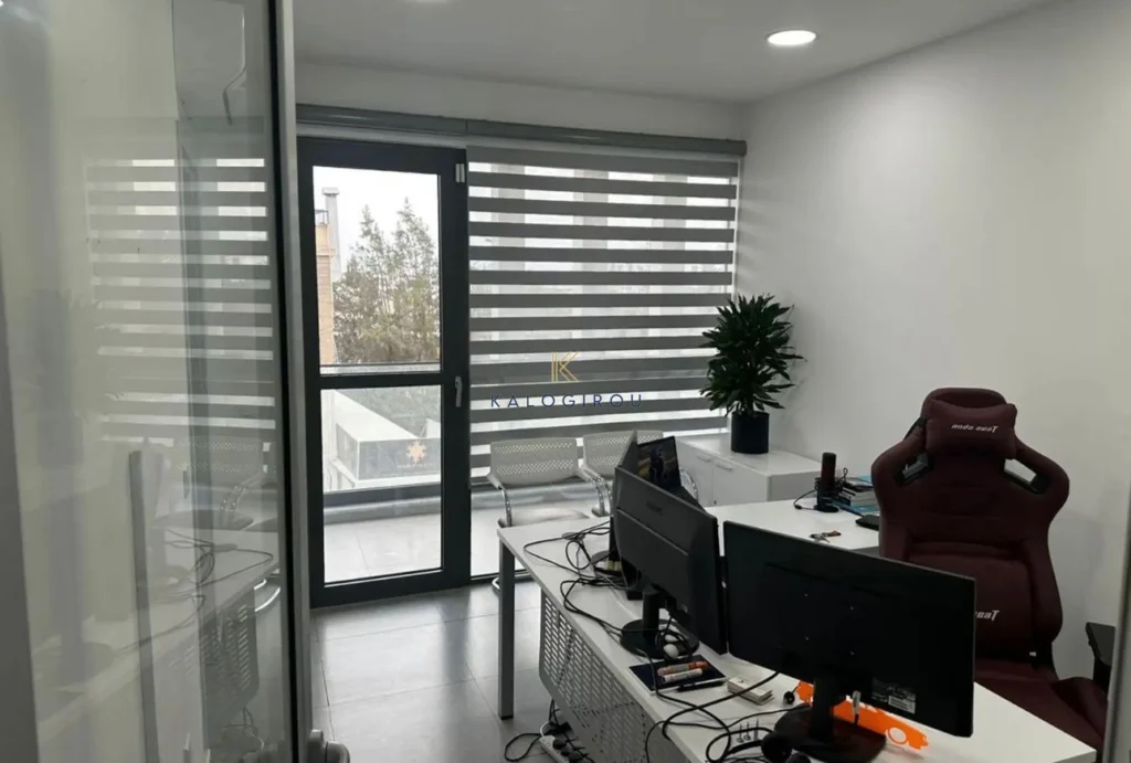 Office for rent in the prestigious Krasas area of Larnaca. The property extends over 180 sq.m. and offers a well-presented reception area, a spacious and bright open-plan workspace, a separate kitchen, and two W/Cs. It is located on the second floor of a modern building constructed in 2023, combining contemporary design with excellent functionality. The office is accompanied by three private basement parking spaces, while additional public parking is available directly opposite the building for added convenience.