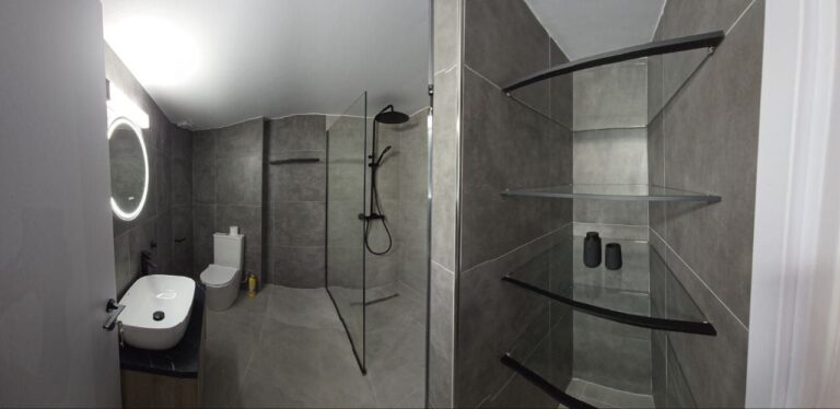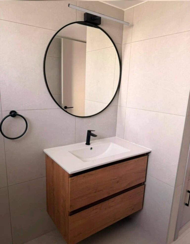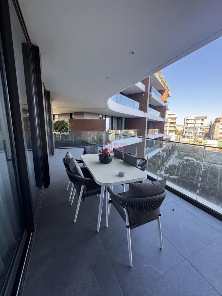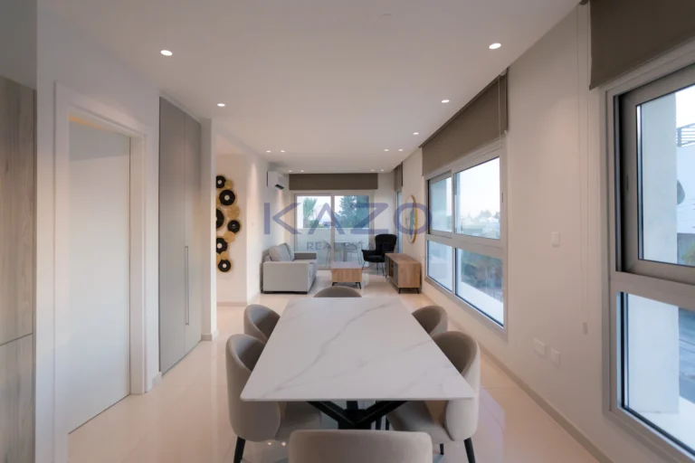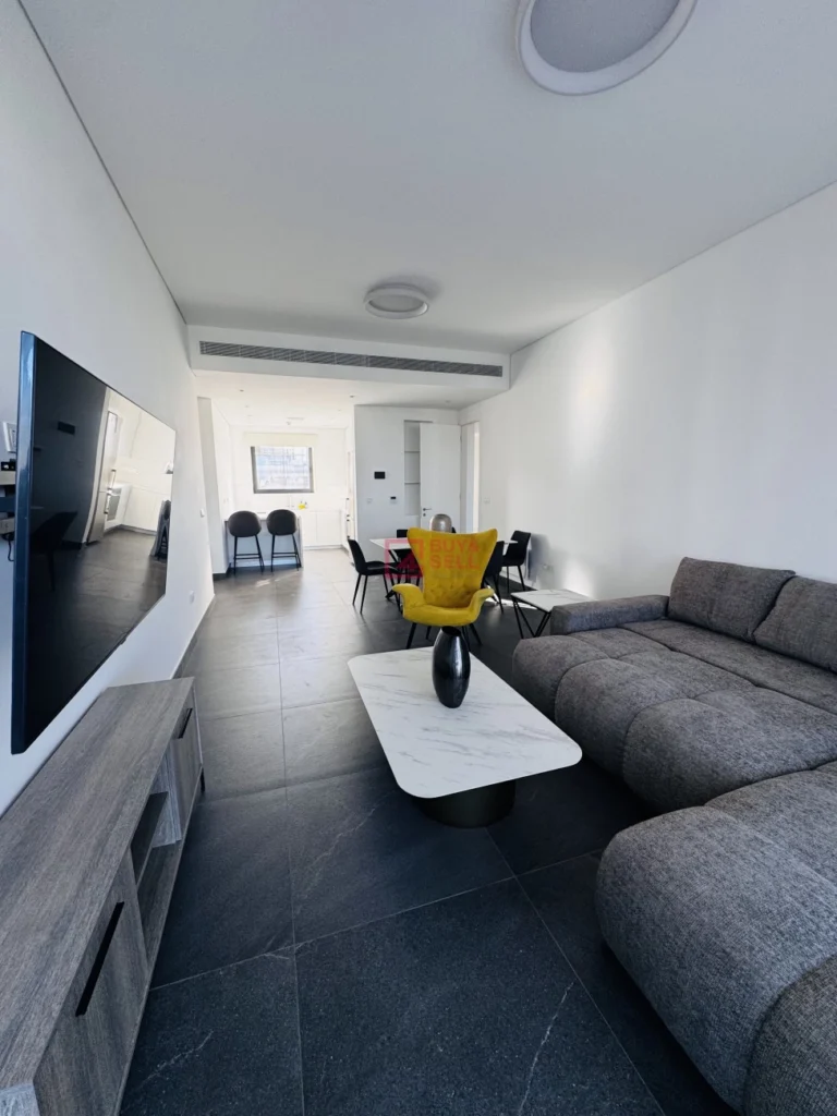 Step inside to find a fully furnished interior with contemporary finishes. The living and sleeping area is arranged for maximum use of space and includes a comfortable bed, sofa, work desk, and storage solutions. The open kitchen is equipped with modern appliances and a dining area, perfect for meals at home. A clean and functional bathroom completes the studio, offering all the essentials in a practical layout.
