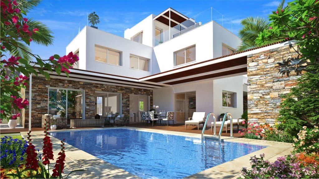 A new complex in the heart of the tourist area of Paphos in Cyprus. The villas are designed on large plots and have large terraces and private pools. The complex is located opposite one of the most famous sandy beaches of Paphos and has easy access to a variety of restaurants, pubs, beach bars, 5-star hotels, Paphos Water Park and Kings Avenue Shopping Center.