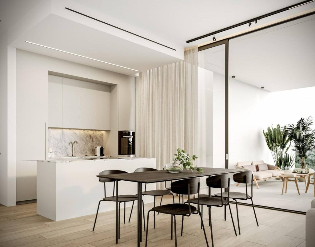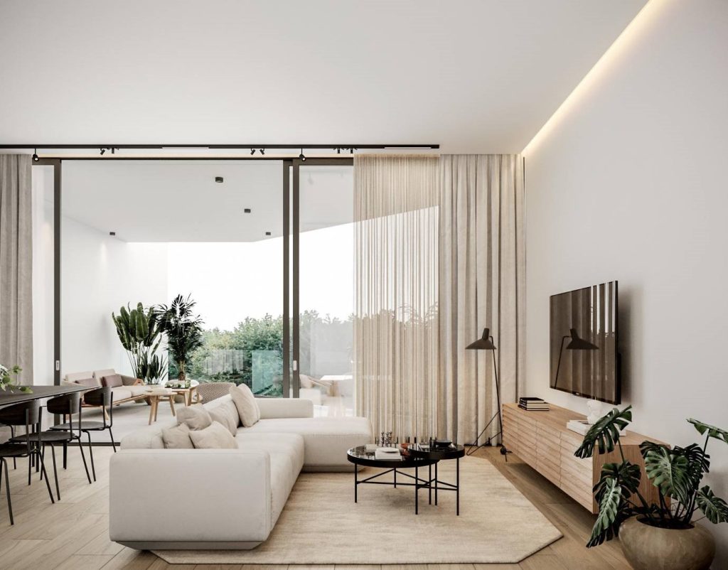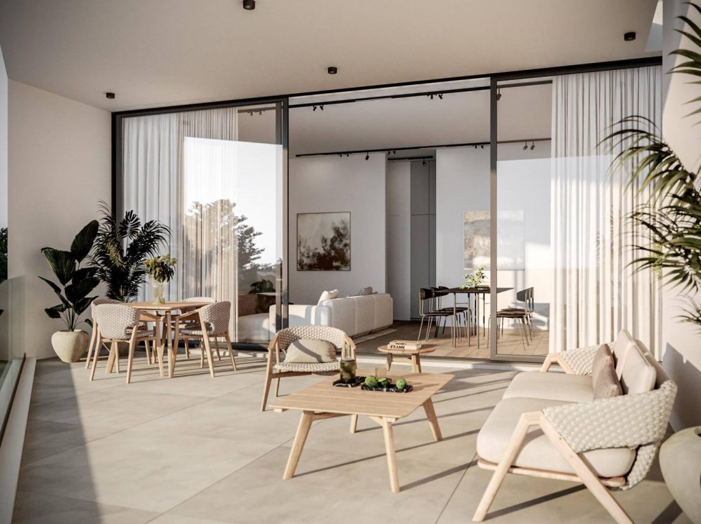 Project in Engomi. The building consists of 2 and 3 bedroom apartments, as well as an exquisite 3 bedroom apartment on the ground floor with a private garden. The project is located in a quiet area near a wide range of amenities. The design was inspired by the modern trends of urban life, which include large living rooms, large verandas and functional bedroom layouts. Smooth minimalistic lines intertwine with a playful criss-cross facade and culminate in a stunning main lobby.