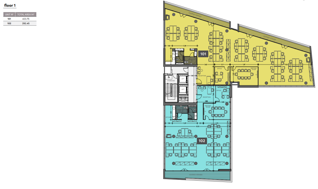 A new office building in the Mesa Geitonia area designed by the best architects. Located in the heart of the famous business district. 2 spacious offices on each floor. Common amenities include a reception and 23 parking spaces. Basic building with utilities, without finishing; High ceilings (3.20 m); VRV central air conditioning system; Thermo-aluminum window frames.