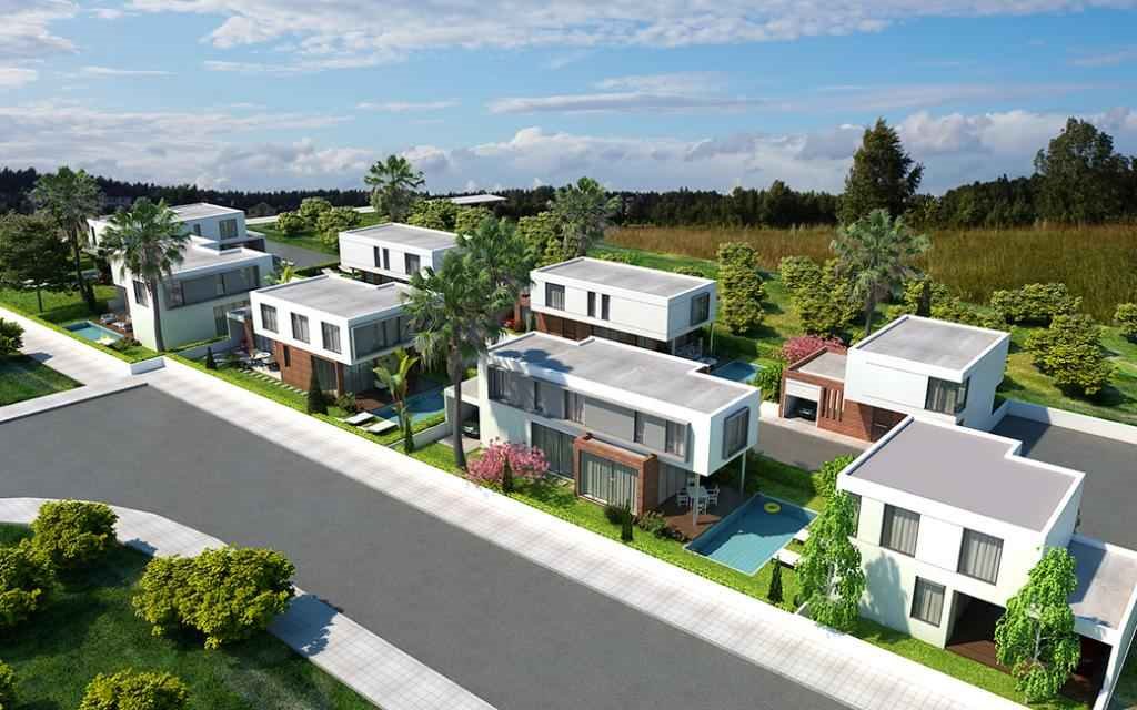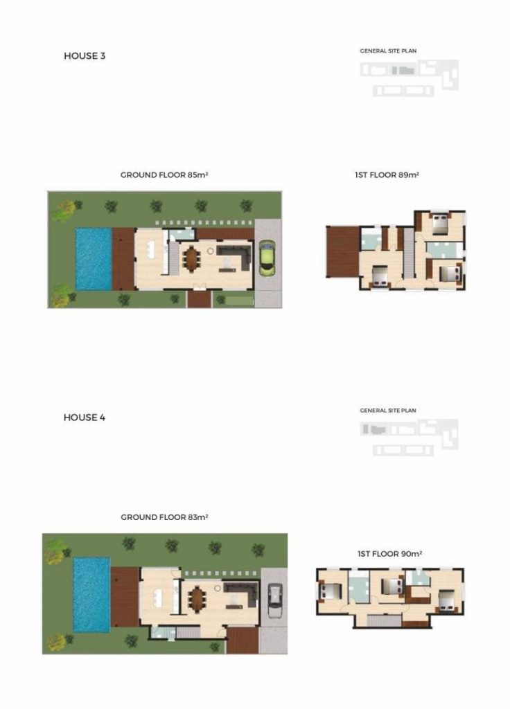 The two-level houses open up to large lush gardens, covered outdoor areas and a private pool. It is a grade A Energy Efficient project and it features photovoltaic systems, designed to supply usable solar power to the houses.