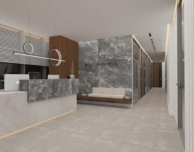 For sale an office building of 6 floors + 1 technical floor under construction. Each floor is 270 m2. The sea view starts from the 3rd floor. It will be ready by the end of 2023. 200 m from the sea, 18 parking spaces.