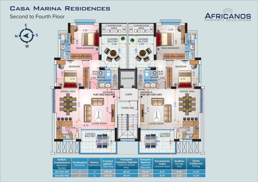CASA MARINA RESIDENCES has been fully designed and studied by our professional team of Architects, Engineers and Interior Designers. The modern design makes excellent use of features like top quality marble, unique glass balconies and clever layout of living areas designed to offer optional space, privacy and also a views of the prestigious neighborhood and Famous Larnaca Salt Lake.