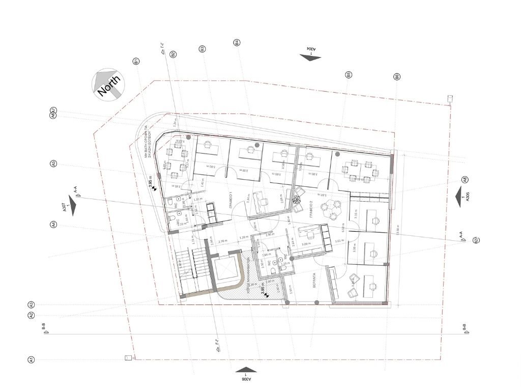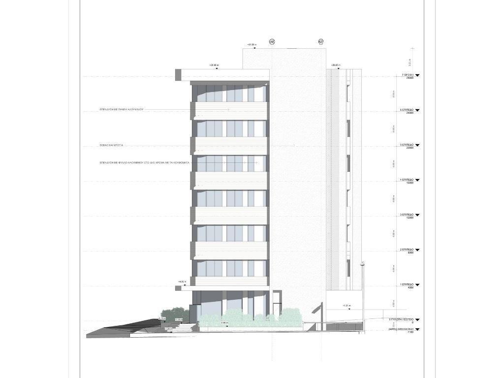On Kallipoleos Avenue in Lykabittos, Nicosia, in the heart of the business center of the capital, we create a new modern office complex. “The Cross Point” is suitable for professionals who want to accommodate their business in a specially designed space with all modern comforts. The building consists of seven levels and two basements. On the ground floor we have designed a showroom / office.
