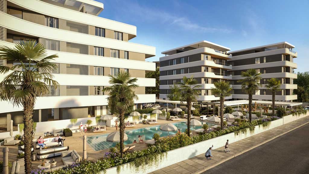 The building in its visual concept resembles the silhouette of a grand yacht. A striking element of the architecture is the wide balustrades that encircle each floor, thereby emphasizing the use of horizontal lines in the design. All residents will be able to enjoy the privacy of a gated complex with infrastructure, an outdoor swimming pool, a gym, landscaped gardens and covered parking.