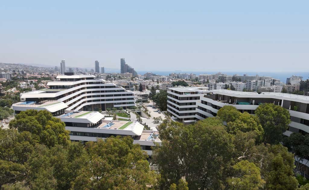 Luxury residential complex in the center of Limassol, in a prestigious and quiet area of the tourist zone, about 500 meters from the sea. There are also beautiful and spacious park areas for walking around the complex. The design idea is based on the principle of interaction of two elements – natural nature and the world created by man.