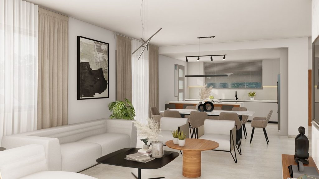 A new project in a quiet area of Geroskipou. Possible furniture in the whole house from the designer, for every taste.
