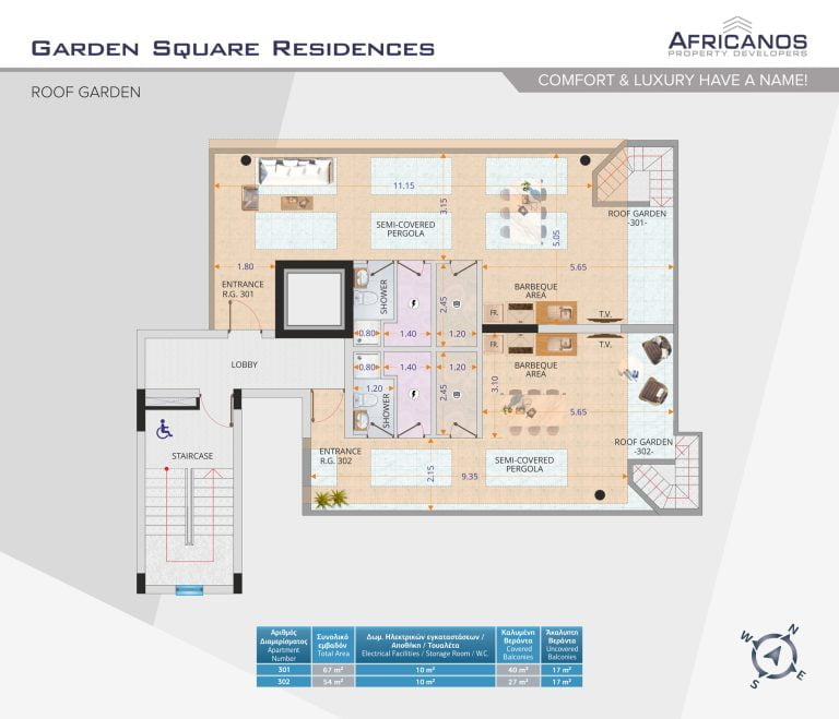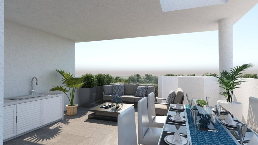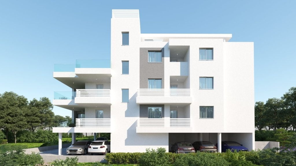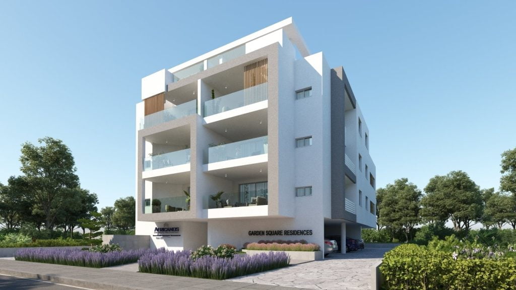 The project is located in a prestigious urban area of Larnaca, less than 3 km from the Blue Flag beaches of Larnaca. The project boasts EIGHTS apartments, with 2 bedrooms and 2 bathrooms – all with spacious and modern living spaces. There are three apartments on each floor, which ensures optimal privacy for potential buyers. The two apartments on the third floor have separate private and luxurious roof gardens with stunning views of the beautiful area. Each apartment has one parking space and a storage room at ground level. A lovely residential area, quiet and family-oriented, surrounded by large luxury houses and residential real estate. The project is very close to schools, within walking distance of Lidl Supermarket and Metropolis Shopping Center, as well as with direct access to highways leading to Nicosia, Limassol, Paphos and Famagusta. The famous Kamares Aqueduct, the Larnaca Salt Lake and the Cineplex entertainment complex are in close proximity. GARDEN SQUARE RESIDENCES has been fully designed and studied by our professional team of architects, engineers and interior designers. The modern design makes excellent use of such features as high-quality Italian ceramic finishes, unique glass balconies and thoughtful layout of residential areas, providing additional space, privacy, as well as views of the prestigious area and the famous salt lake of Larnaca.