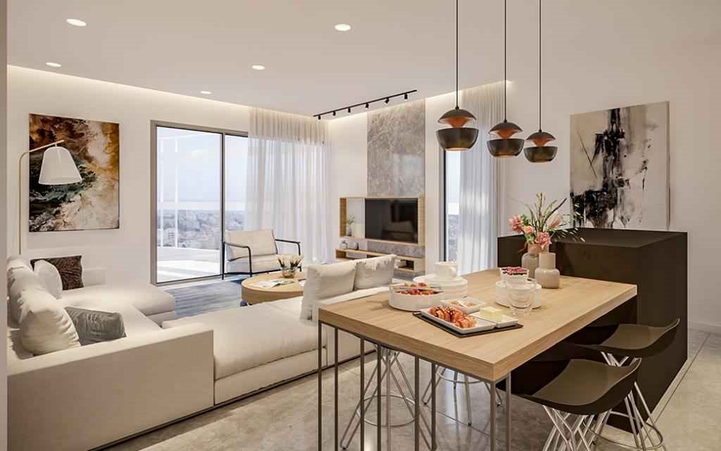 The linear design and cylindrical curves of Habitat combine to become the facade of the two towers which accumulate into a clean step-like frontage of more than 100 meters. Escaping the hustle and bustle of the city along Griva Digeni Avenue and comprising of two residential towers. Tower A and Tower B space is abundant with 10 and 12 floors respectively.