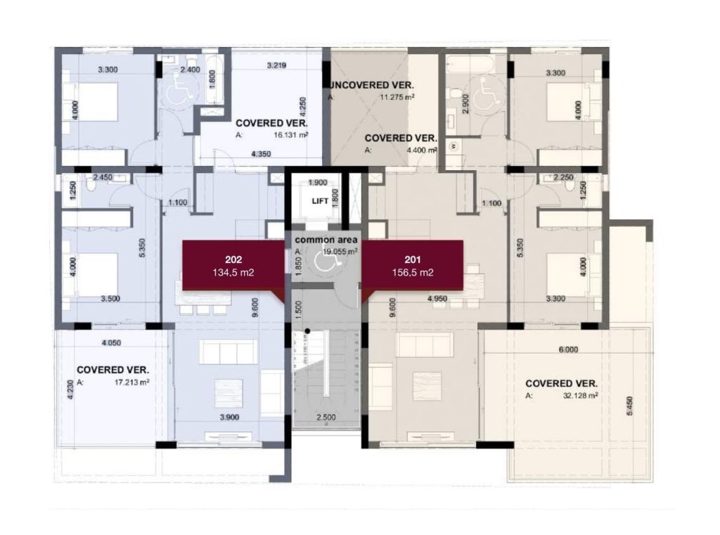 Five cozy two- and three-bedroom apartments and two luxury penthouses with private gardens and rooftop pools are located on five floors.