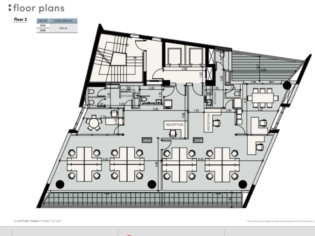 Latitude Tower is a new premium commercial building in the business center of Limassol. The five-storey complex consists of 5 luxury offices, one on each floor, which provides ample space. Spacious layouts. Designed by London’s leading architectural and design studio. Exquisite modern design. Spacious professional work areas. 21 parking spaces. Easy access to modern infrastructure and amenities. Floors and walls in toilets and bathrooms with ceramic tiles. High ceilings (3.20 m). Provision of VRV. High-quality plumbing of European brands. Thermo-aluminum window frames with double glazing.