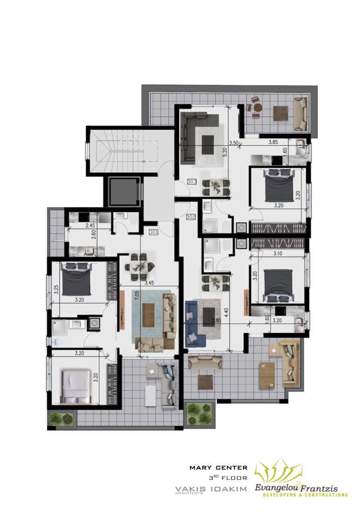 Mary Center consists of six 1-bedroom luxury apartments, three 2-bedroom luxury apartments, one 3-bedroom luxury penthouse and one 1-bedroom luxury penthouse.