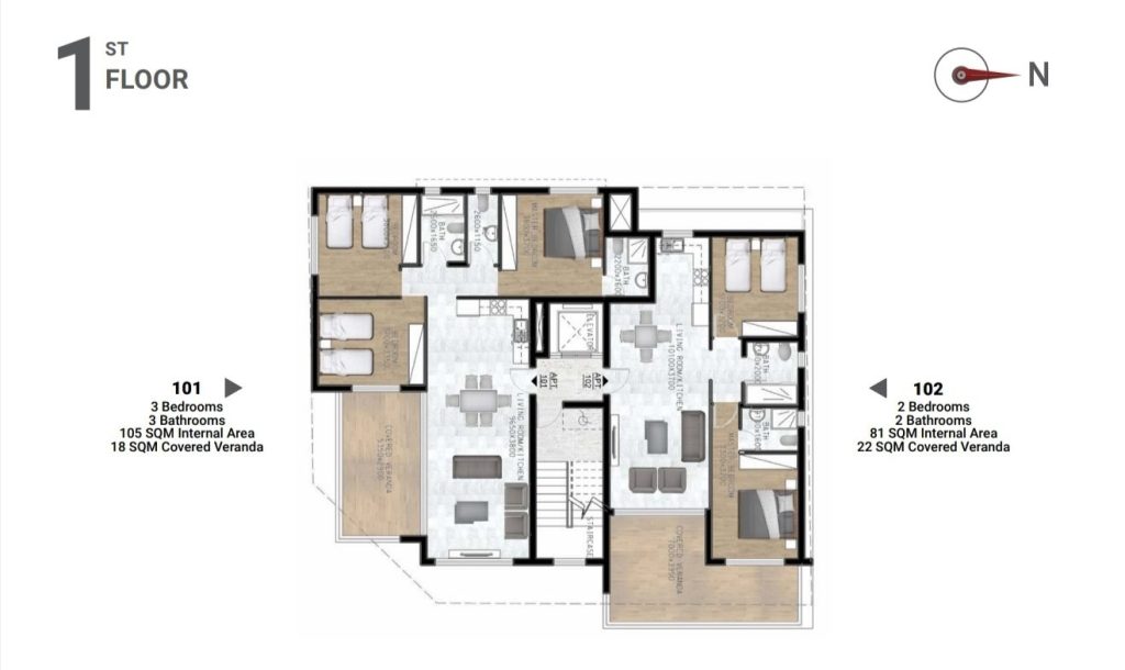 The project is located in Phaneromeni, one of the most elite and prestigious areas of Larnaca. Phaneromeni is known for offering its residents a comfortable lifestyle where tranquility and convenience are guaranteed. The new complex will be another luxury project in the area, with an excellent location close to all city amenities, just 500 meters from the Salt Lake of Larnaca and 200 meters from the magnificent Pattihio Park, the largest park in Larnaca. The complex consists of apartments with 2 and 3 bedrooms. Penthouses with roof terraces. A 3-minute drive from the center of Larnaca. 5 minutes from the beach. Nearby cafes and restaurants.