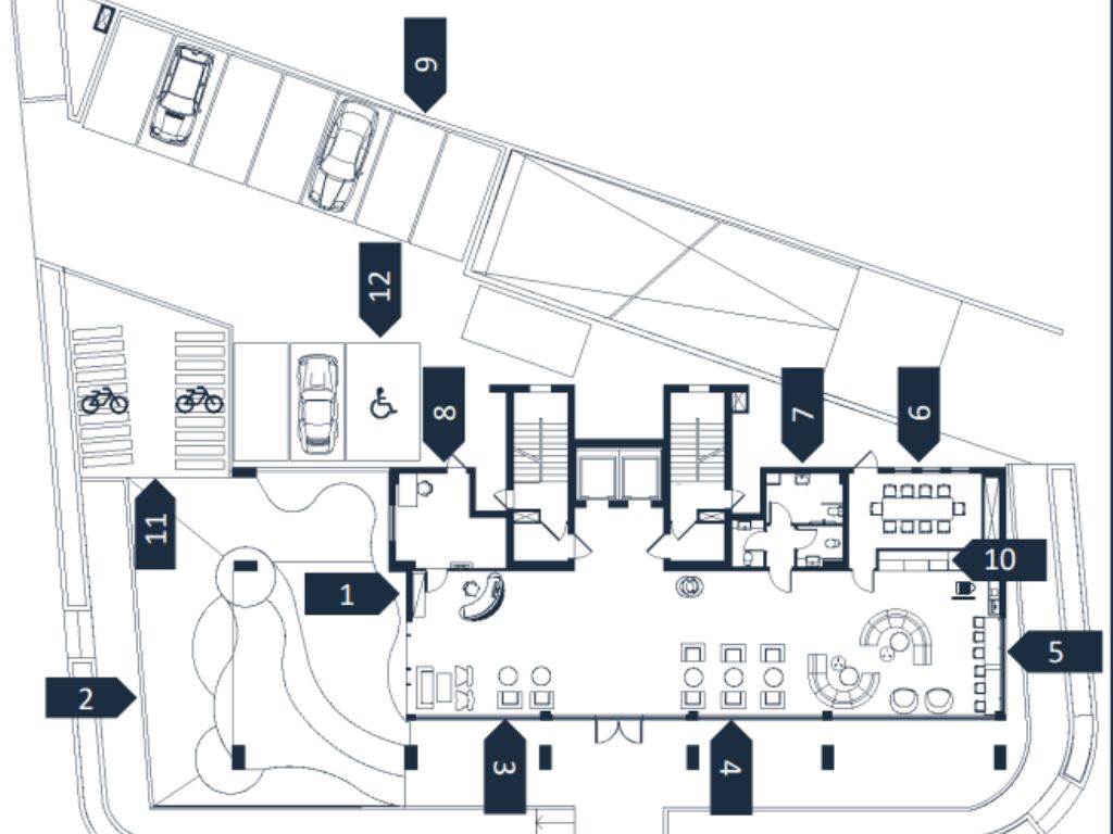 The building entrance on the ground floor equipped with an access control / magnetic card system