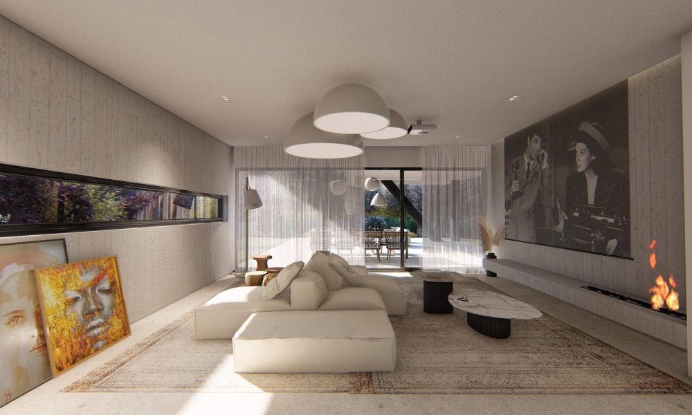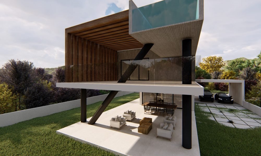The cantilevered pool, the cinematic TV screen and the modern fireplace push this house to a different level of luxury.