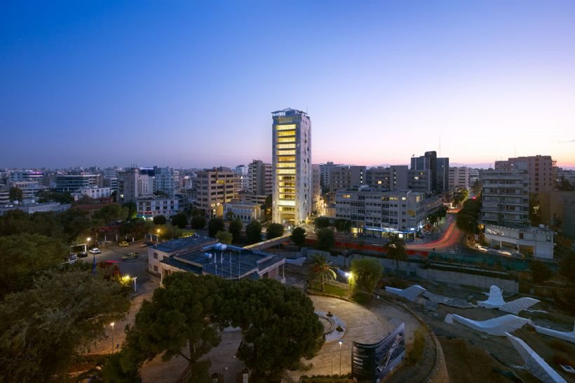 The center of Nicosia, opposite the medieval walls and the moat surrounding the old part of the city. The most famous modern building of the capital, The White Walls, rises 17 floors above the ground. The 10,000 square meter building includes retail space, offices and apartments.
