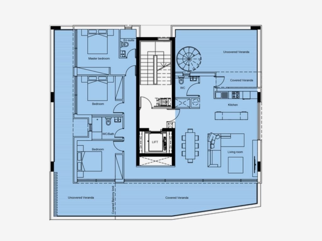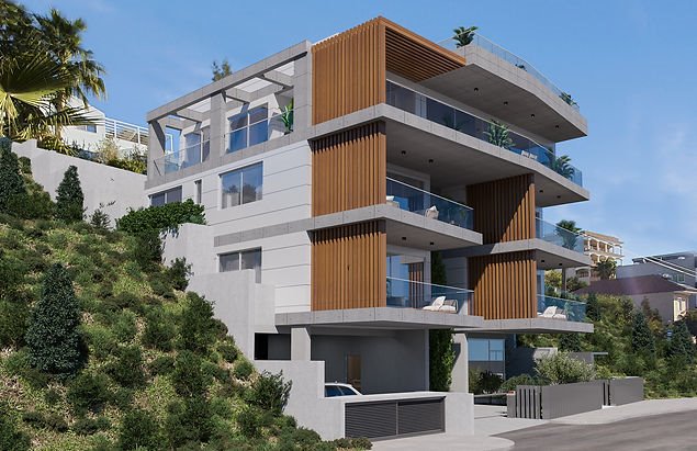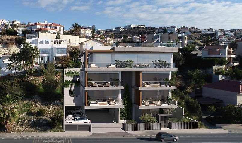 A new project in Limassol, just 5 km from the city center and the sea. The building consists of four spacious 2-bedroom apartments and one grandiose 3-bedroom penthouse with its own roof garden, offering panoramic views of Limassol and the sea.