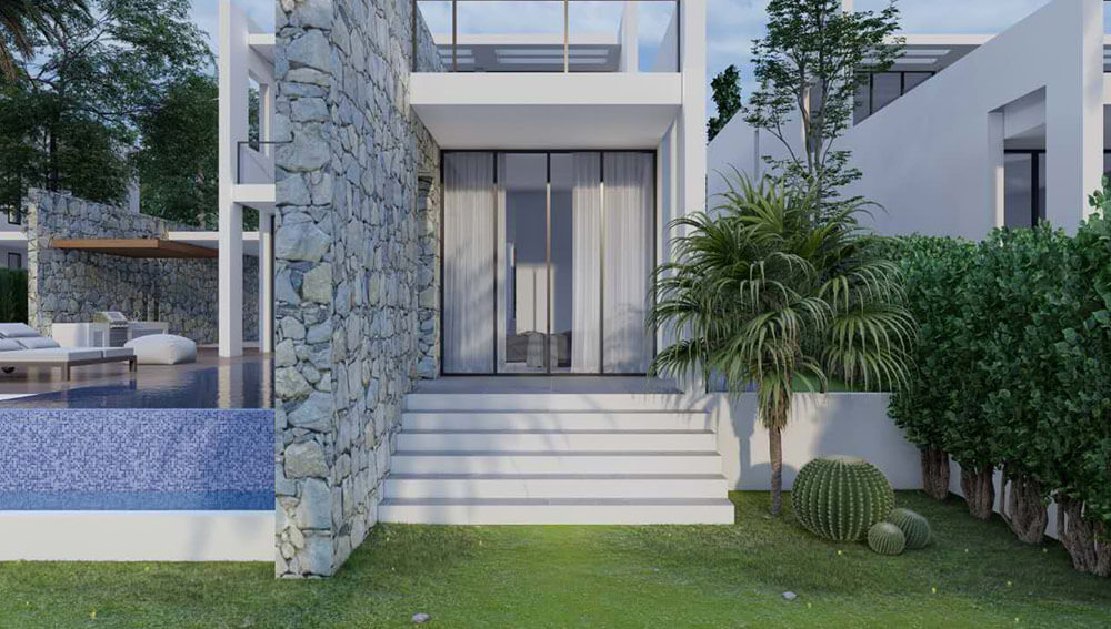 – Each villa features a private garden with captivating sea and city views.