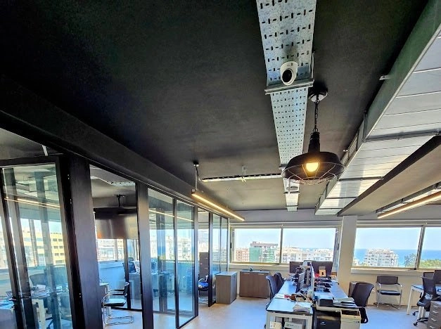 1Μοντέρνο Γραφείο – 400 Τ.Μ. – Κυκλικός Κόμβος Αγίου Νικολάου Επάνω όροφος με πανοραμική θέα στη θάλασσα από όλα τα δωμάτια του γραφείου 10 ξεχωριστά γραφεία + 2 ενιαίοι χώροι + Κουζίνα + Βεράντα 4 τουαλέτες (2 ανδρών, 2 γυναικών) Χωρητικότητα έως 50 ατόμων Συνδυασμός ενιαίου χώρου και ιδιωτικών δωματίων Βιομηχανικός σχεδιασμός με πολυτελές μαύρο αλουμίνιο Κλιματιστικά VRV Μεγάλη κουζίνα Φωτισμός LED σε όλους τους χώρους Διπλά τζάμια Κάμερες ασφαλείας Πλήρως κλιματιζόμενο σε κάθε δωμάτιο, πυράντοχη αίθουσα server (συμβατή με Cysec) Υπερσύγχρονο σύστημα συναγερμού Αποθήκη Τεράστιο μπαλκόνι καπνιστών Πυλωμένο πάρκινγκ
