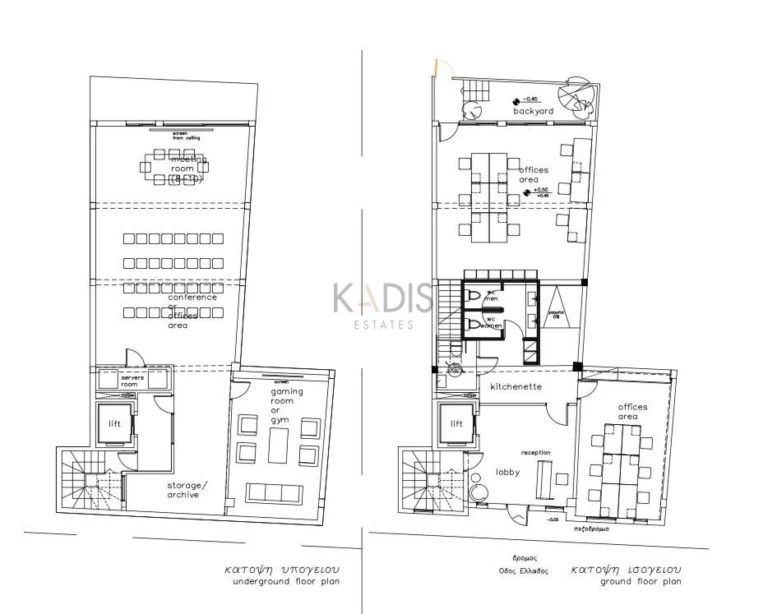 Το κτίριο μπορεί να ενοικιαστεί ολόκληρο ή ως 2 ξεχωριστά γραφεία (1 εταιρεία μπορεί να πάρει το υπόγειο και ισόγειο και μια ξεχωριστή εταιρεία να πάρει τον ημιώροφο και τον πρώτο όροφο).