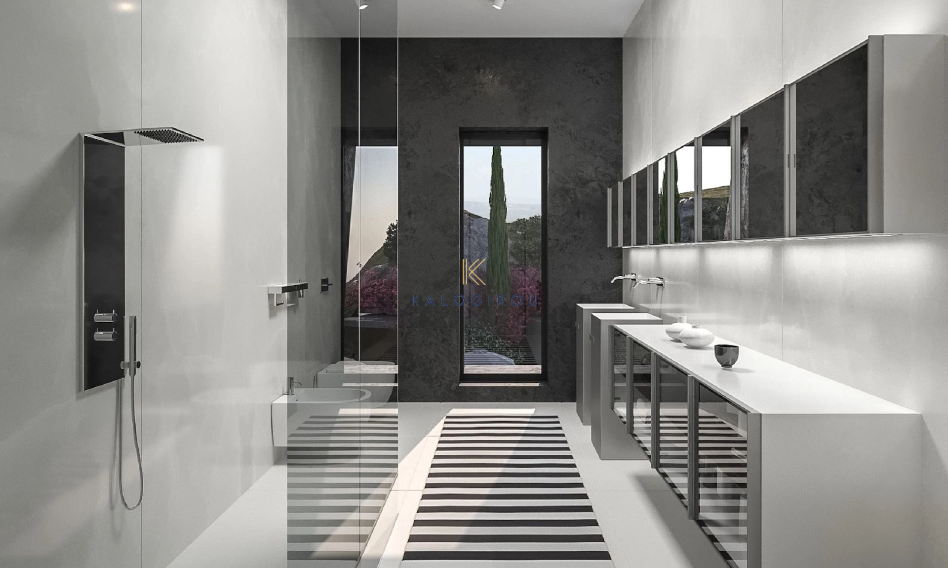 Πολυτελής κατοικία έξι υπνοδωματίων προς πώληση στην περιοχή του Αγίου Τύχωνα, Λεμεσός. Βρίσκεται στην κορυφή του λόφου και προσφέρει υπέροχη θέα στο χωριό Άγιος Τύχωνας και τις γύρω ορεινές περιοχές, καθώς και στη θάλασσα. Λόγω της ανώμαλης επιφάνειάς του και του γεγονότος ότι ο αρχιτέκτονας δεν ήθελε να επέμβει στη φύση, το έργο έχει σχεδιαστεί ως αναπόσπαστο μέρος του τοπίου. Επιπλέον, η σχεδιαστική ιδέα έχει μια επιπλέον λεπτομέρεια, η οποία καθιστά αυτό το έργο μοναδικό και εξαιρετικό.
