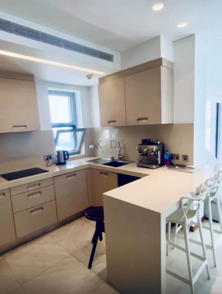 Αυτή η εντυπωσιακή κατοικία 2 υπνοδωματίων στον 2ο όροφο προσφέρει 92 τ.μ. εκλεπτυσμένης διαβίωσης με ψηλά ταβάνια, επώνυμο φωτισμό και πολυτελή φινιρίσματα σε όλους τους χώρους. Και τα δύο υπνοδωμάτια διαθέτουν ensuite μπάνια, ενώ η ευρύχωρη βεράντα 12 τ.μ. προσφέρει ανεμπόδιστη θέα στη θάλασσα. Το σπίτι είναι εξοπλισμένο με ενδοδαπέδια θέρμανση, κλιματισμό VRV, κουζίνα υψηλής ποιότητας με συσκευές υψηλής ποιότητας και πλήρες σύστημα έξυπνου σπιτιού Lutron. Οι κάτοικοι απολαμβάνουν παροχές παγκόσμιας κλάσης, όπως ασφάλεια 24/7, υπηρεσίες θυρωρείου, υπερσύγχρονο γυμναστήριο, σπα με σάουνα και ατμόλουτρο, πισίνα ολυμπιακών διαστάσεων, τζακούζι, όμορφα διαμορφωμένους κήπους και ιδιωτικό χώρο στάθμευσης, εξασφαλίζοντας έναν πραγματικά αναβαθμισμένο τρόπο ζωής.