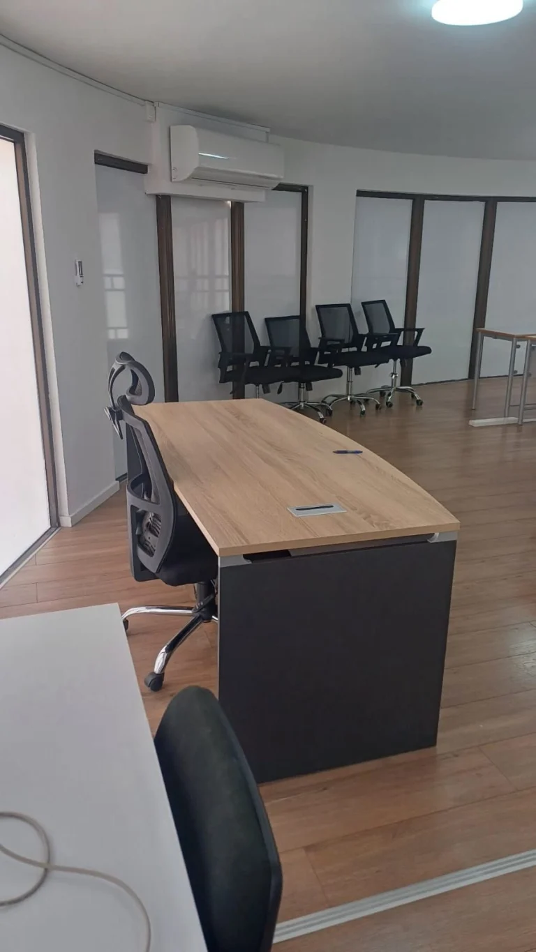 For rent: A modern, key-ready office space with a total internal area of 180 m² in the heart of Kato Pafos. This renovated office was updated in 2023 and presents a fresh, professional environment perfect for your business needs. Enjoy the comfort of partially furnished interiors, providing flexibility to adapt to your brand and requirements.