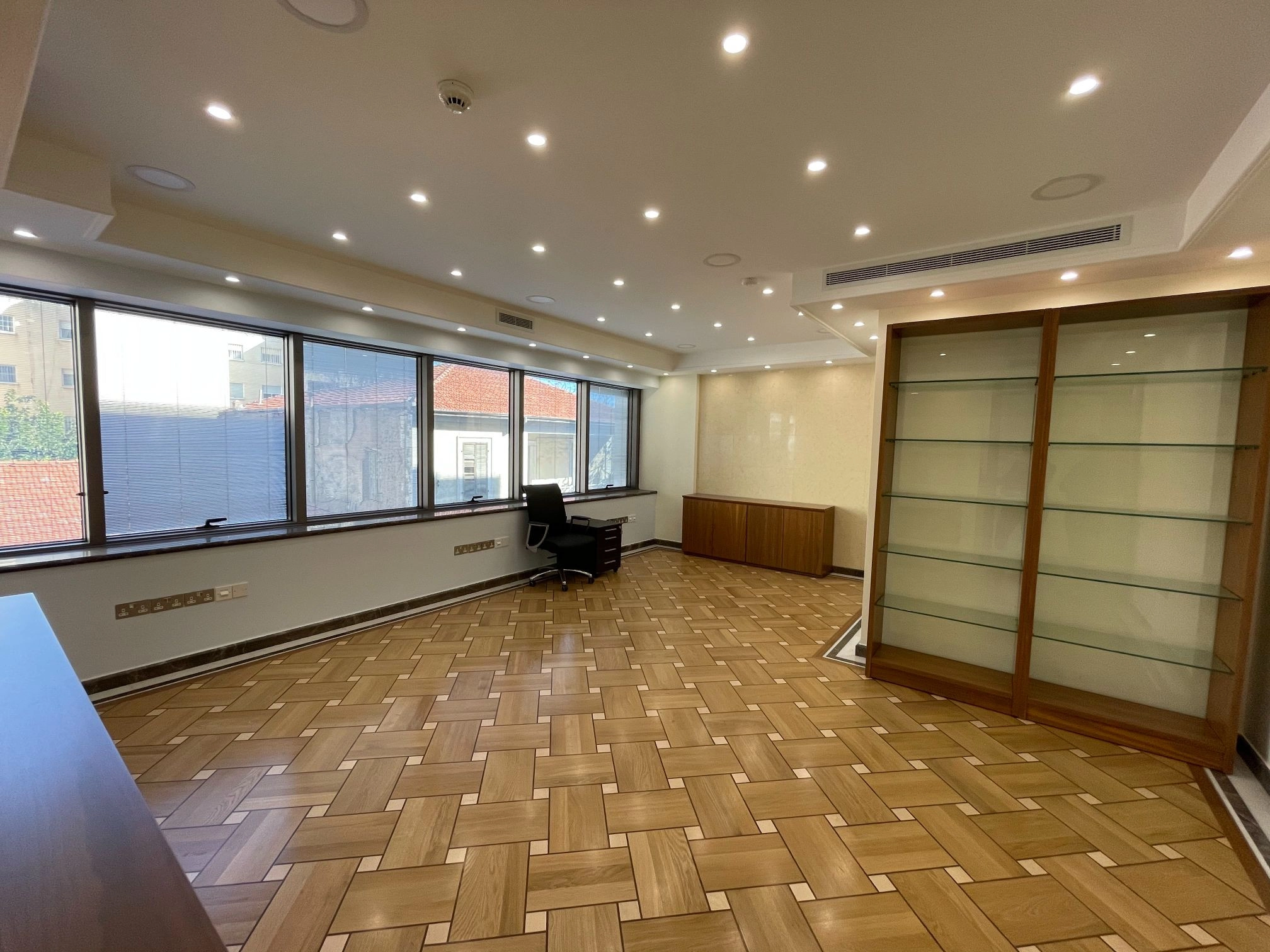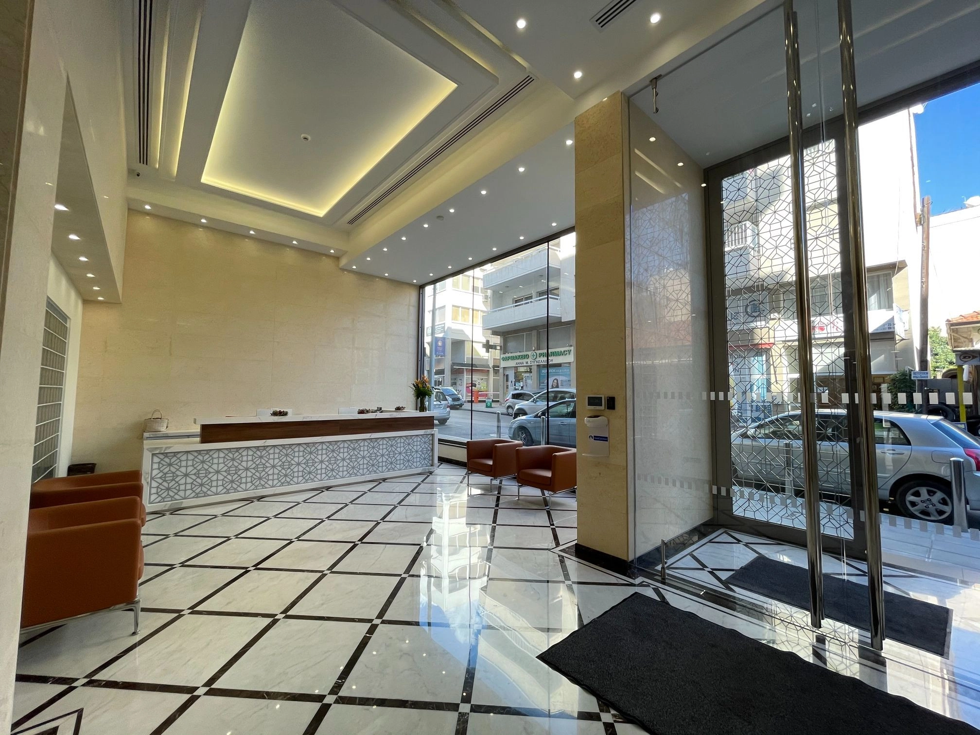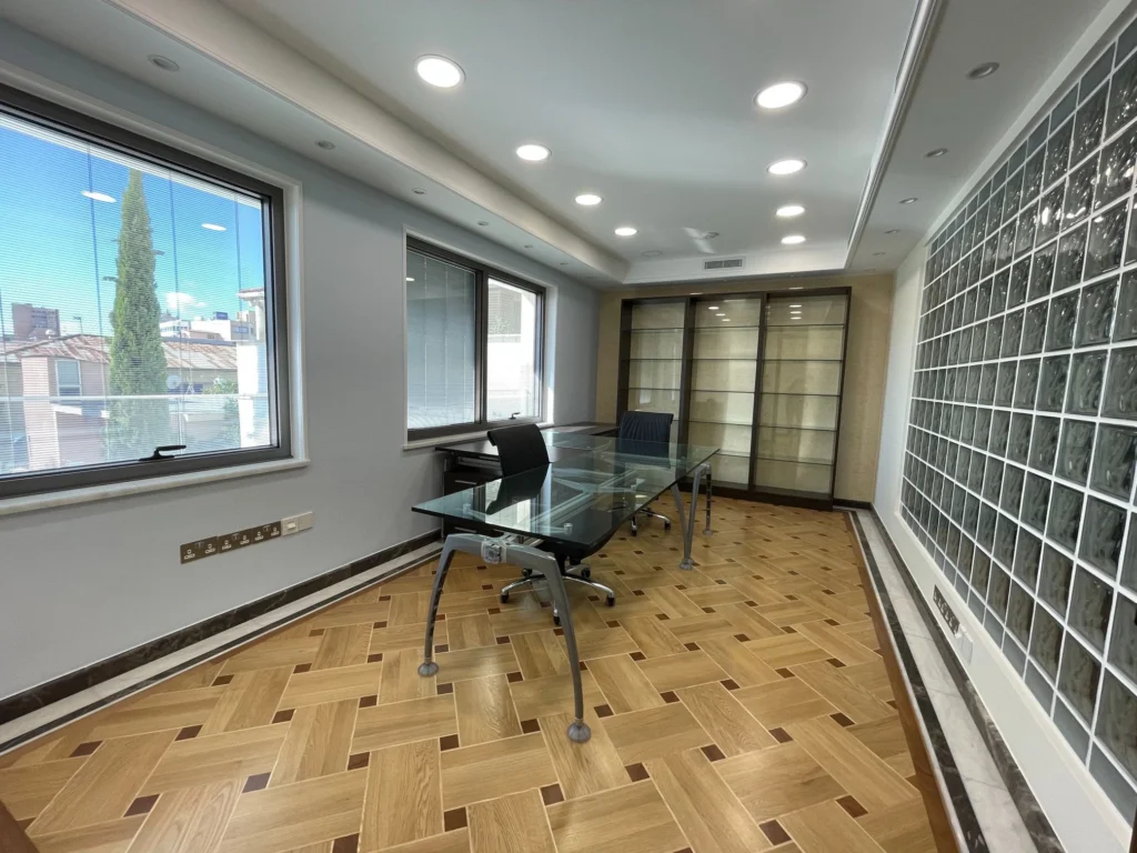 The prestigious business centre is located in a high demand location in the City Center, near Gladstonos street. It has mountain and city views and the nearby amenities will meet the company’s everyday business, staff, and customer needs. The available floor for rent is 1st and 2nd (480sq.m each floor). There are 11 spacious separate offices, 1 conference room, 1 reception+reception lobby, copy/printing space, 2 bathrooms (men and women), 2 kitchenettes on EACH FLOOR.