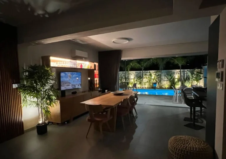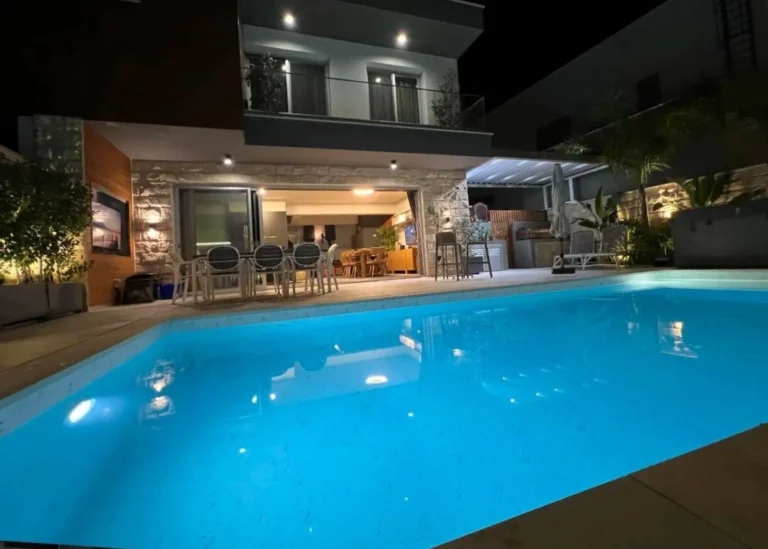 Modern custom designed home for sale with unobstructed sea views in a very prominent area in Agios Athanasios.Built to the highest standards with energy rating A+. Approx 200 square meters covered area, plot 433.Four large bedrooms each with their own en-suite, master with freestanding bath and separate shower one bedroom on the ground floor for guests.Master bedroom has free standing bath separate shower walk in wardrobe. House has underfloor heating, raised ceilings, hidden Mitsubishi from A/C units, aluminium windows, rolling shutters, private pool with water feature, big garden, double garage, built barbecue area with sink and power sockets. Italian kitchen, wardrobes and internal doors. Three water filtration systems, water softener for the whole house and a 7kw solar system.There is LED strip lighting all the way round the house, security cameras and alarm system.The villa is next to a park so no one can block the full sea view.Five minutes drive from Agios Athanasios roundabout, 1 minute from Foleys school and approx 10 minutes to the beach