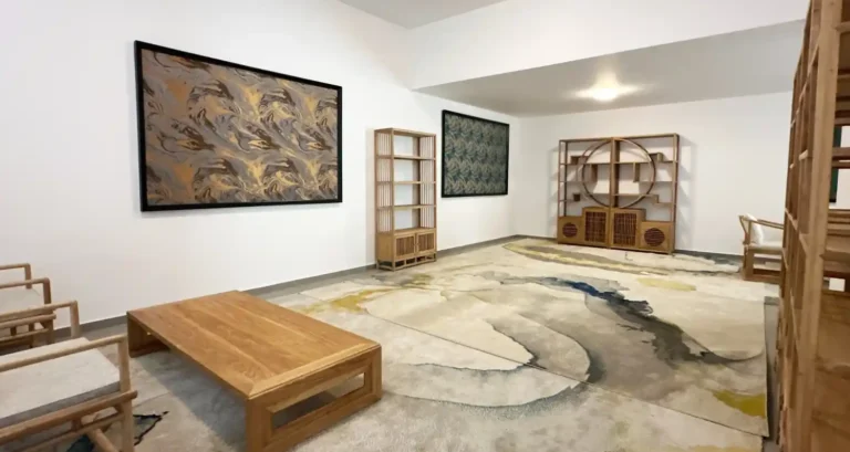 The expansive living area includes three distinct living rooms and a well-appointed kitchen, perfect for both everyday living and entertaining. Large, high-ceiling windows with aluminum frames fill the space with natural light and offer beautiful views of the surrounding garden.