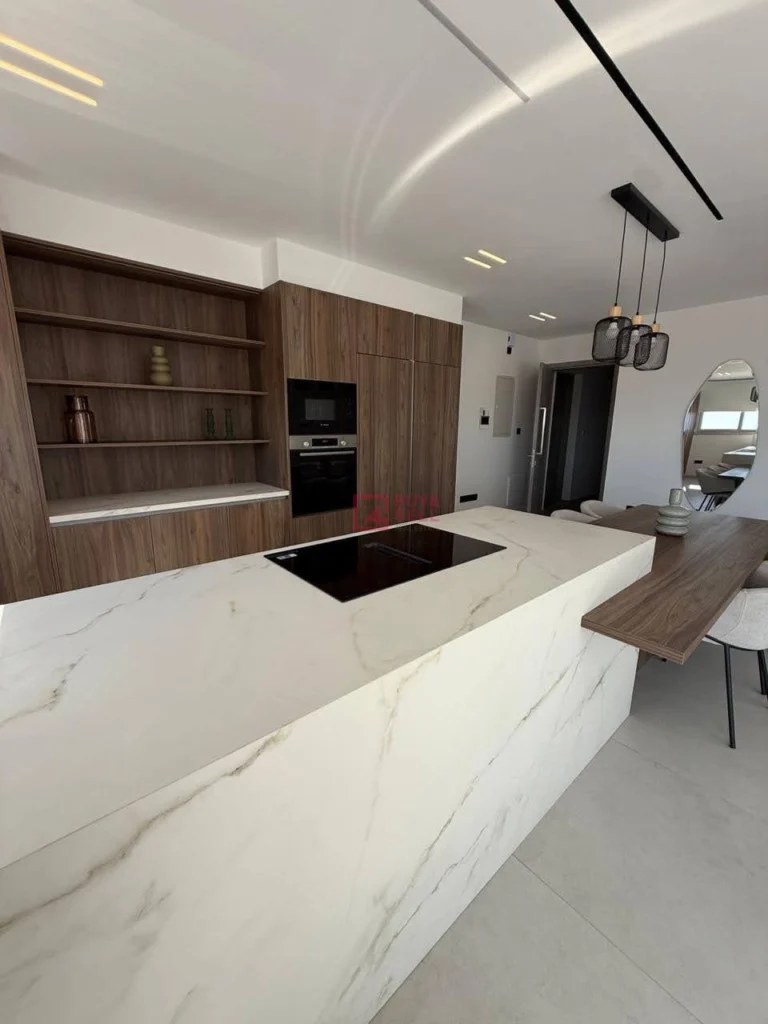This brand new, excellently built apartment building is located in a quiet street in Agios Athanasios, just a couple of minutes away from the roundabout. This apartment is on the 2nd floor; it consists of two bedrooms, two bathrooms (one of which is ensuite), and a very spacious living room and outdoor space. There are split units in each room for cooling. A dedicated, covered parking space is provided, along with a storage room.