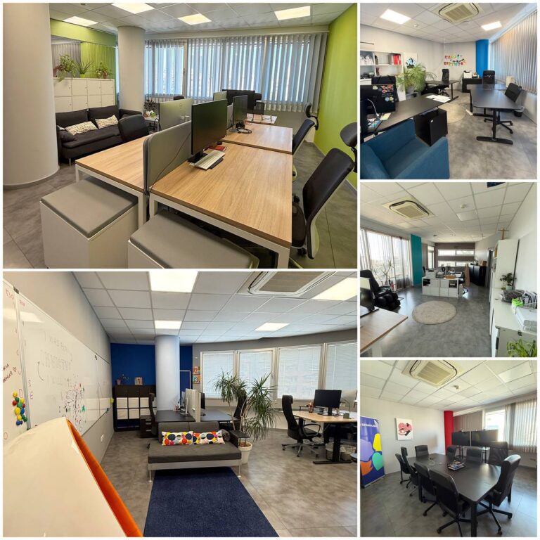 It includes a reception, 4 office spaces, 4 WC, a small kitchen, and it is fully airconditioned.