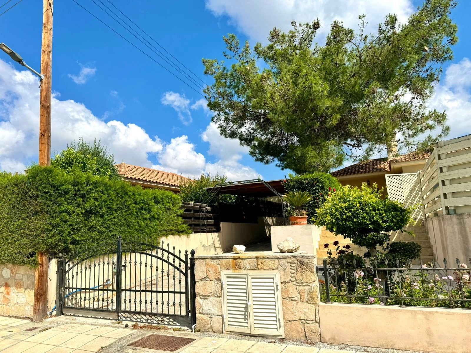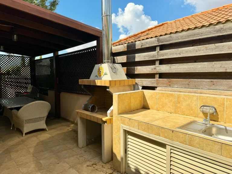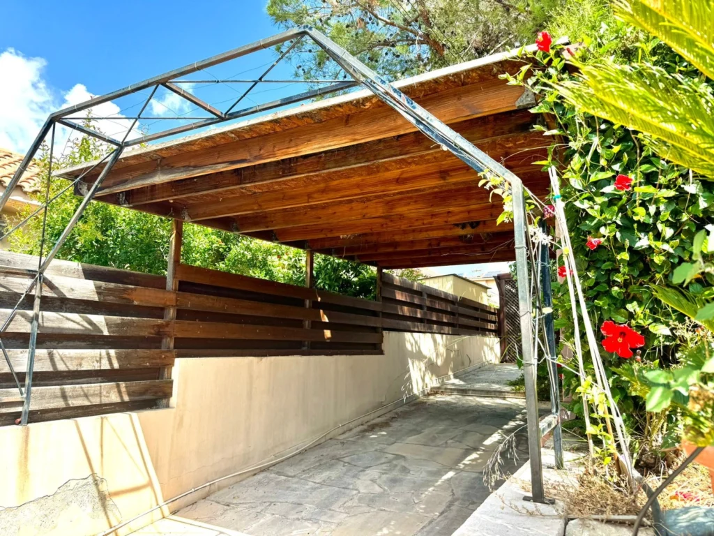 For sale a 3 bedroom bungalow with a swimming pool in the Souni area. There are necessary household appliances and furniture. The house has a garden with tangerine, orange, pomegranate and lime trees. There is also covered parking, outdoor parking and storage rooms.